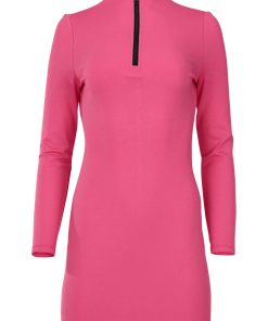 Ponte Zip Front Mini Dress – Hot Pink