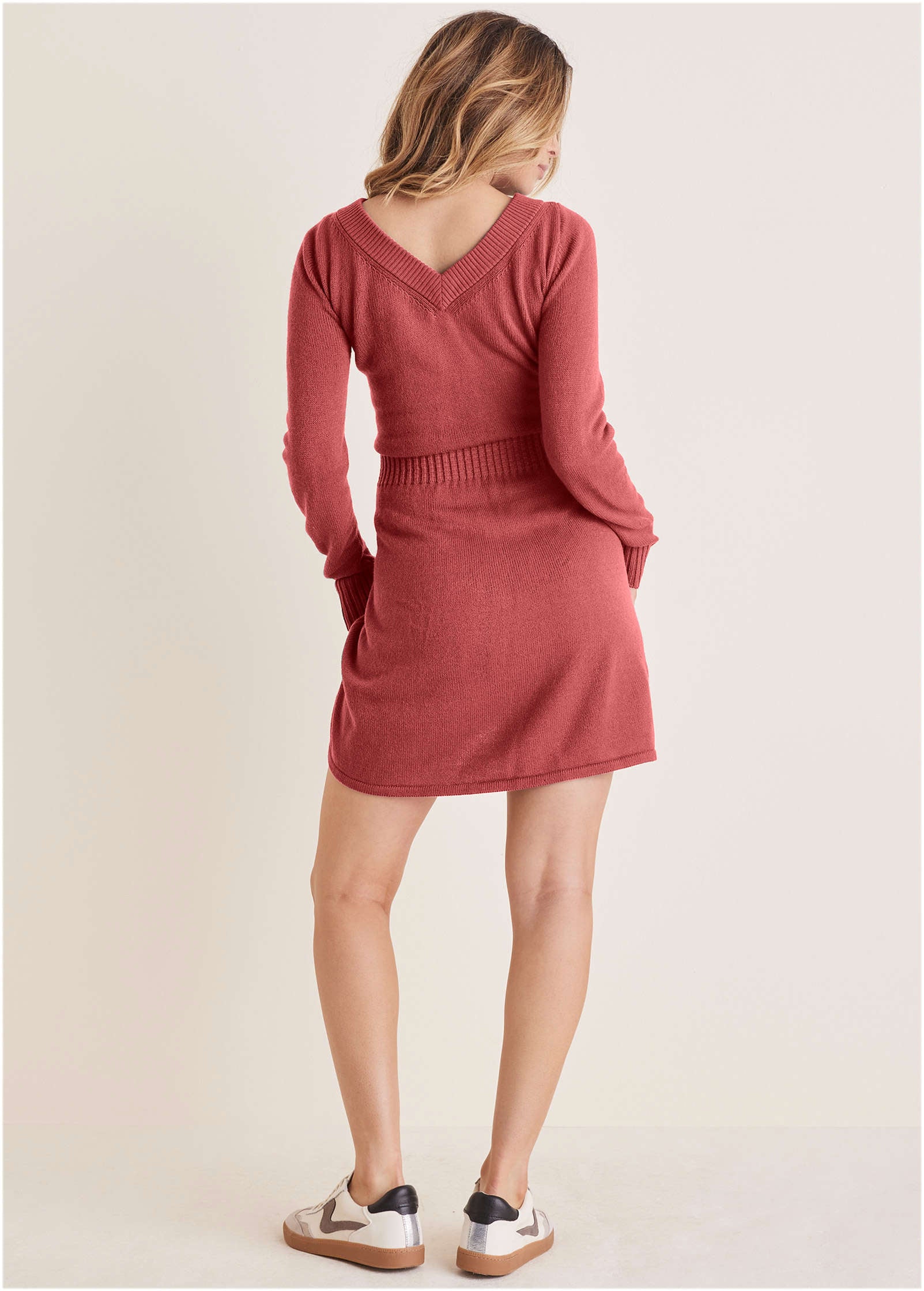 SKU: z248706-mnrd-v-neck-mini-sweater-dress-mineral-red-30551866